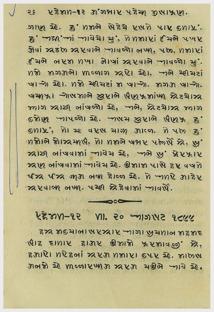 The scanned image below expresses the view of the Late Aga Khan III on the Glorious Qur’an. The image is of a Religious Pronouncement (Farman, also called Rahemat [mercy]), Number 11 made during the Late Aga Khan’s first visit of Africa. The city was then known as Zungbar, Zanzibar. The Religious Pronouncement was made on 30th, July 1899 and was later published in a Hard Cover Book entitled Baher-e-Rahemat. The script is called the Old Khojki Sindhi. There are a few elderly Ismailis from India and Africa living today, who can read this text. This Farman No. 11 is continued from page number 25:
