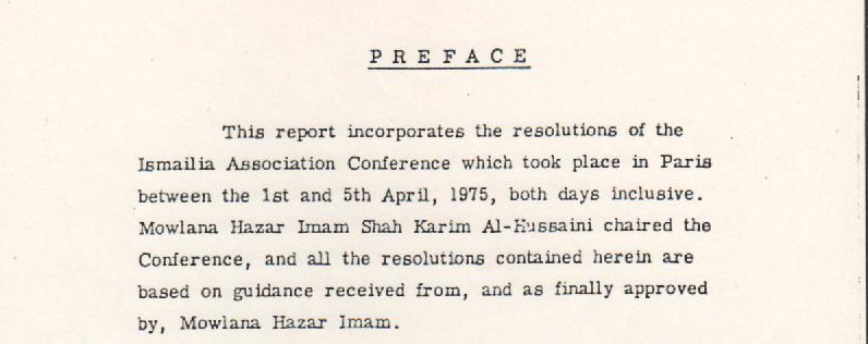 In 1975, Karim Aga Khan declared “Imamate” (Imamah) to be explained and understood as the Manifestation of God (Mazhar of Allah) at the World Ismaili Religious & Social Leaders Conference in Paris. Refer below for the scanned images of the resolution passed during this conference which included the following delegates: