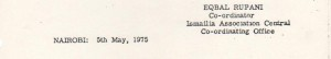 Secretariat :Rai Eqbal Rupani; Rai Fatehali G. Rashid; Rai Mohamedali R. Janmohamed; Huzurmukhi Nizar Khalfan