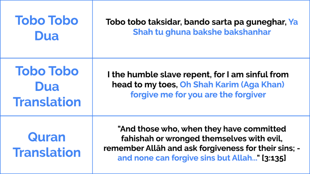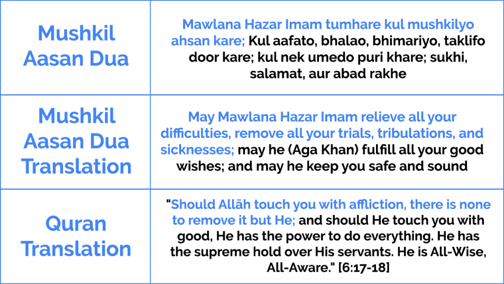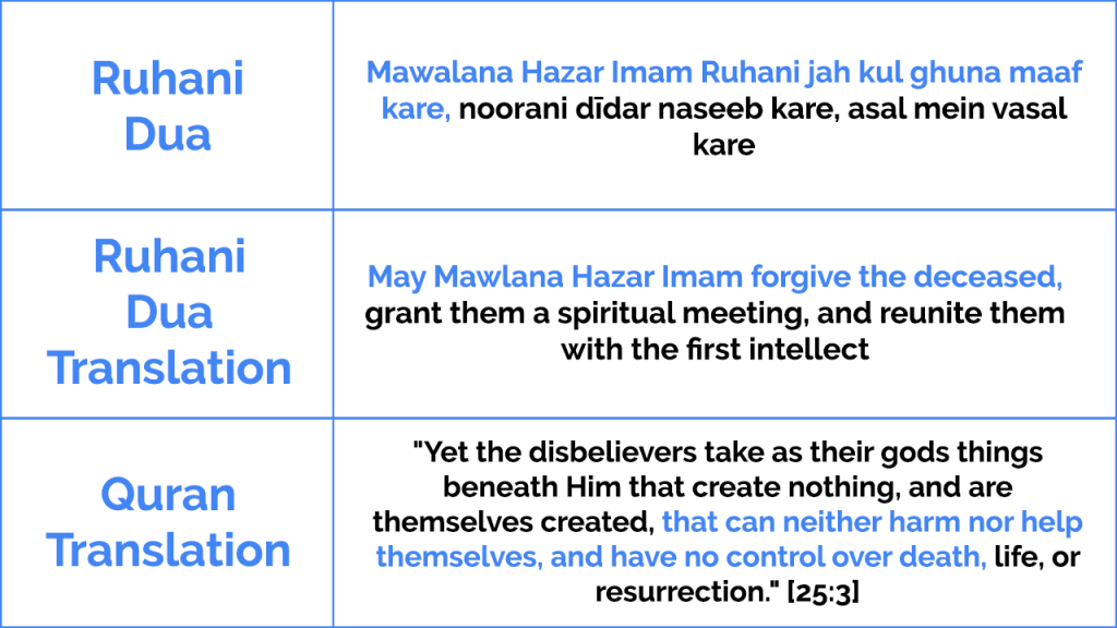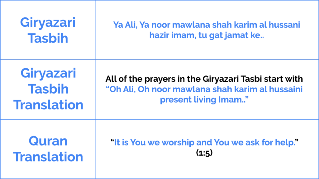 This is a simple comparison between the texts of the Ismāʿīlīs versus text of the Qurʼān. Ismāʿīlīs reading the below can decide for themselves if they feel they are following the Qurʼān.