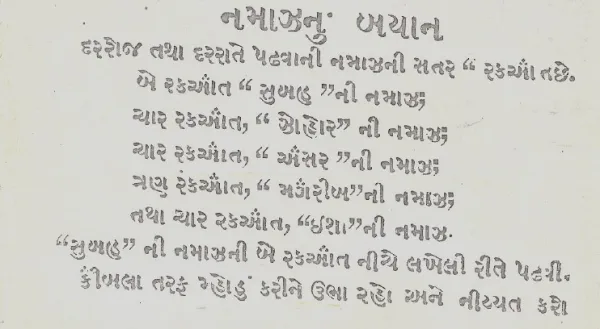 Below is yet another reference from the book written by none other than the 48th Ismāʿīlī Imām Sultan Muhammad Shah Aga Khan III, titled “Khoja Komna Ketlak Mool Tattwo Tatha Kriya Sambath Nanu Pustak”. This book was published in Hijri year 1313 which is about 110 years ago. There is also the khojki script version. Here in it is clearly indicated that the namaz is for five times. This book is originally in Gujrati and the Khojki Script version is also published.