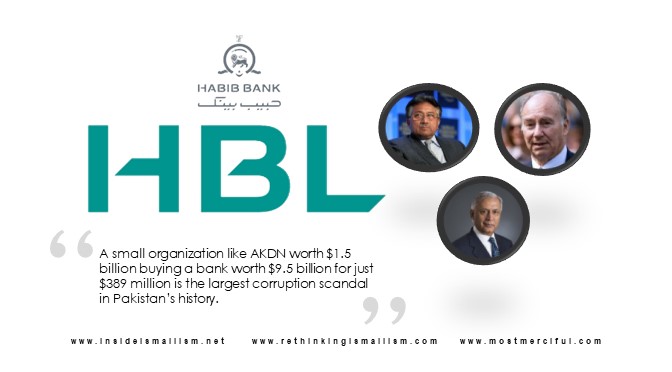 On 29 December 2003 when AKFED (Aga Khan Fund for Economic Developmet) acquired HBL (Habib Bank Limited), AKFED had only PKR 90 billion ($ 1.5 billion) in assets. An organization worth $1.5 billion buying a bank worth $9.5 billion for just $389 million is the largest corruption scandal in Pakistan’s history.