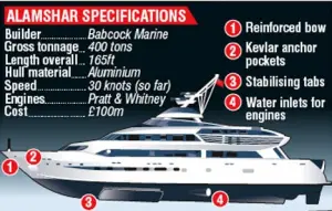 A source said: “This was supposed to reach 60 knots but it can go only half that speed, so the Aga Khan is taking legal advice. He’s not a happy man.” The boat has cost over US$300 million.