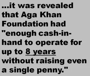 When charityintelligence.ca requested Canada Revenue Agency to dig up the The Aga Khan Foundation Canada (AKFC), it was revealed that Aga Khan Foundation had “enough cash-in-hand to operate for up to 8 years without raising even a single penny.”
