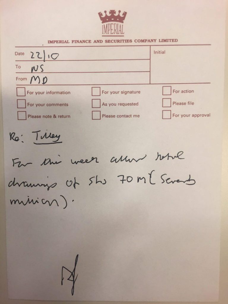 One of the explosive things Naeem Shah handed to the board was a treasure trove of handwritten chits. The chits, dating back to as early as 2002, had instructions to move money from and across various accounts. To get his message across, Abdulmalek would use his Montblanc pens to write instructions to his minions. He must have felt smart, knowing the paper would not create as serious a trail as an email would. But Naeem wasn’t throwing them away. Instead, he secretly filed them, knowing that one day the ruse would run its course. If it did, he would have clear evidence that he hadn’t moved the money on his own volition. It was a trail, and a bloody one.