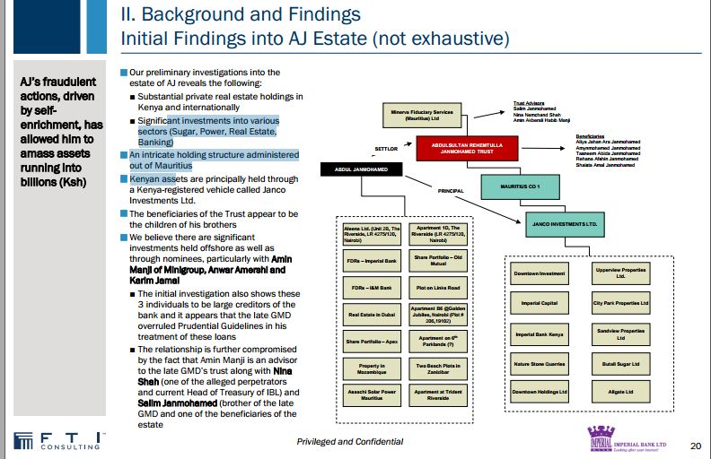 Senior Imperial Bank officials, most of them belonging to the Ismaili community, allegedly siphoned Sh34 billion from the institution, that was placed under receivership, between 2002 and September 2015.
