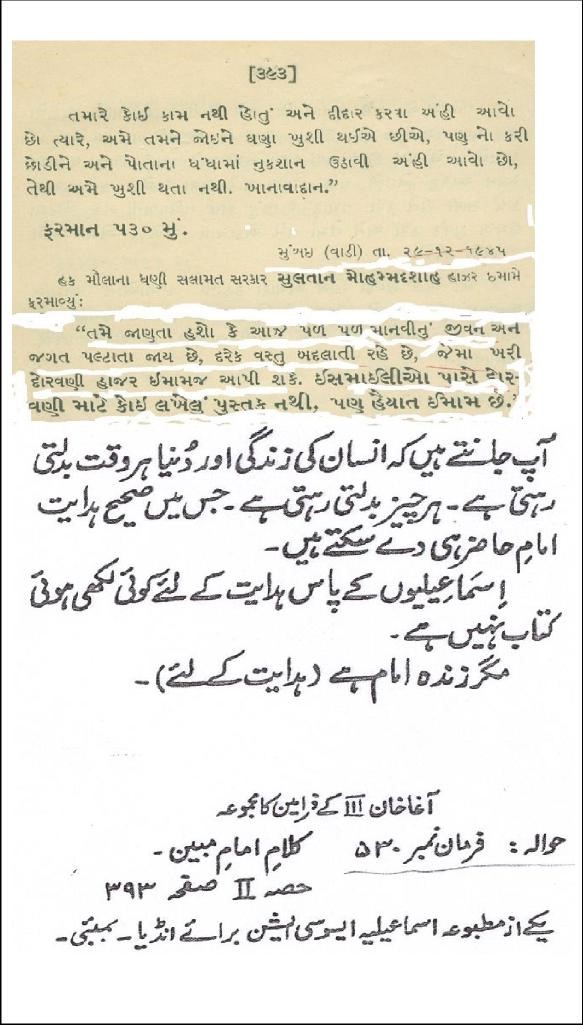 “You are aware of the fact that the life and the world are under constant changes. In such situation only Hazar Imām can provide the proper guidance. There is no written book for guidance for the Ismailis, but, there is living Imām.”