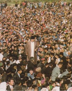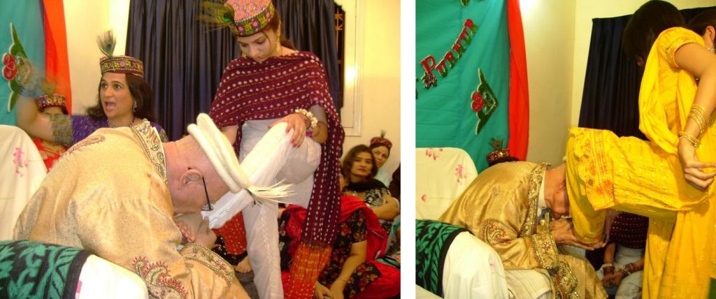 Above: Ismaili priest Nasiruddin Hunzai performing a Ismaili religious ritual with Ismaili women. Nasiruddin Hunzai was the leader of Ismailis in Chitral and Gilgit-Baltistan areas and frequently toured globally. He passed away in 2017.