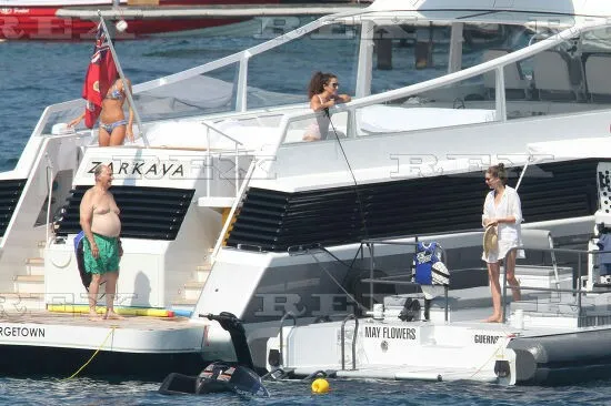 Above: Aga Khan enjoys a vacation on one of his yachts in the Summer of 2017. Just one of his yachts was valued at 200 million pounds in 2014.